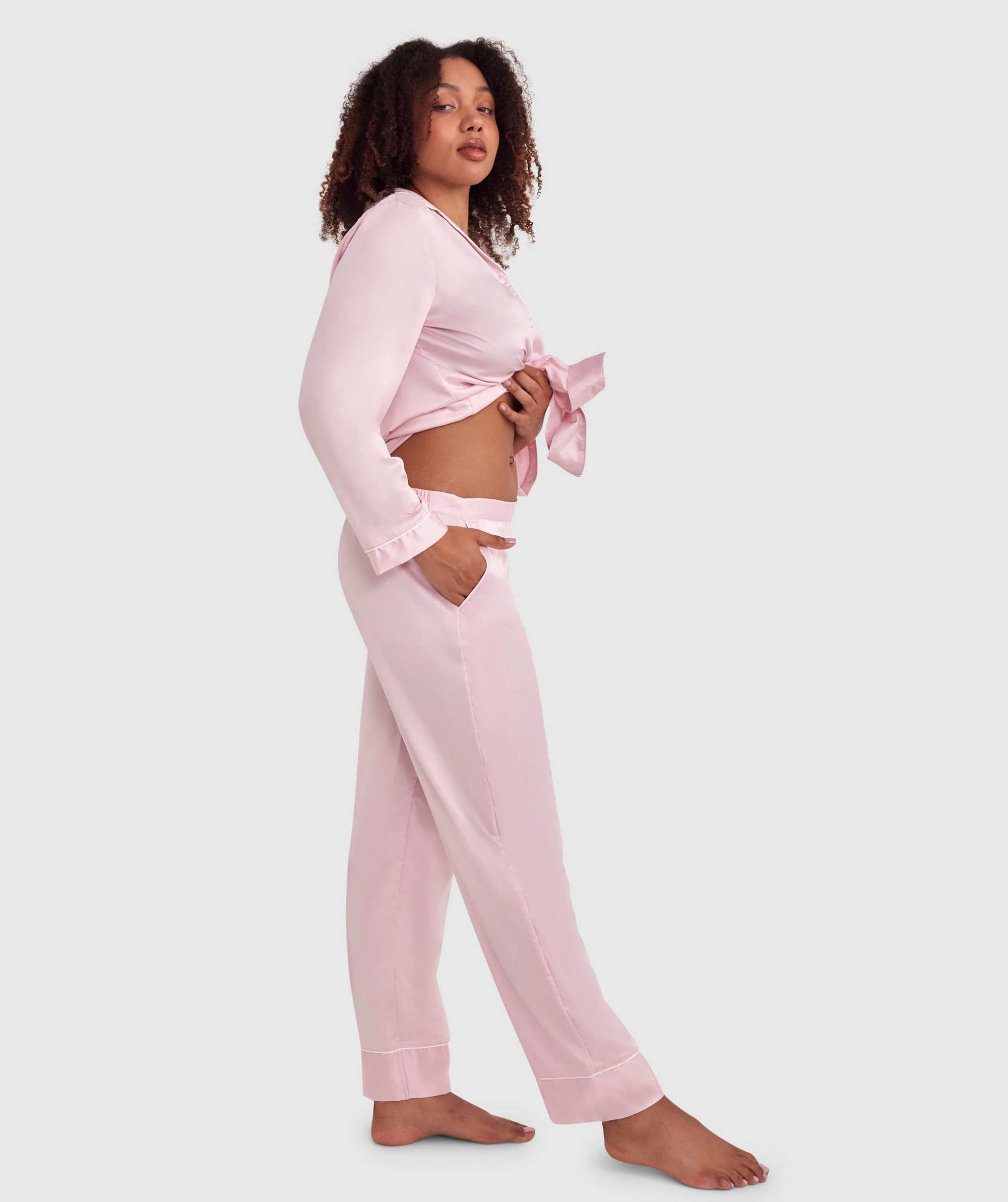 Some nights just call for more coverage. When you want extra comfort without sacrificing style, our Liquid Satin Long Pants are up for the job. These fashionable, light pink PJ bottoms are ultra-soft, silky, and sophisticated for sweet dreams.