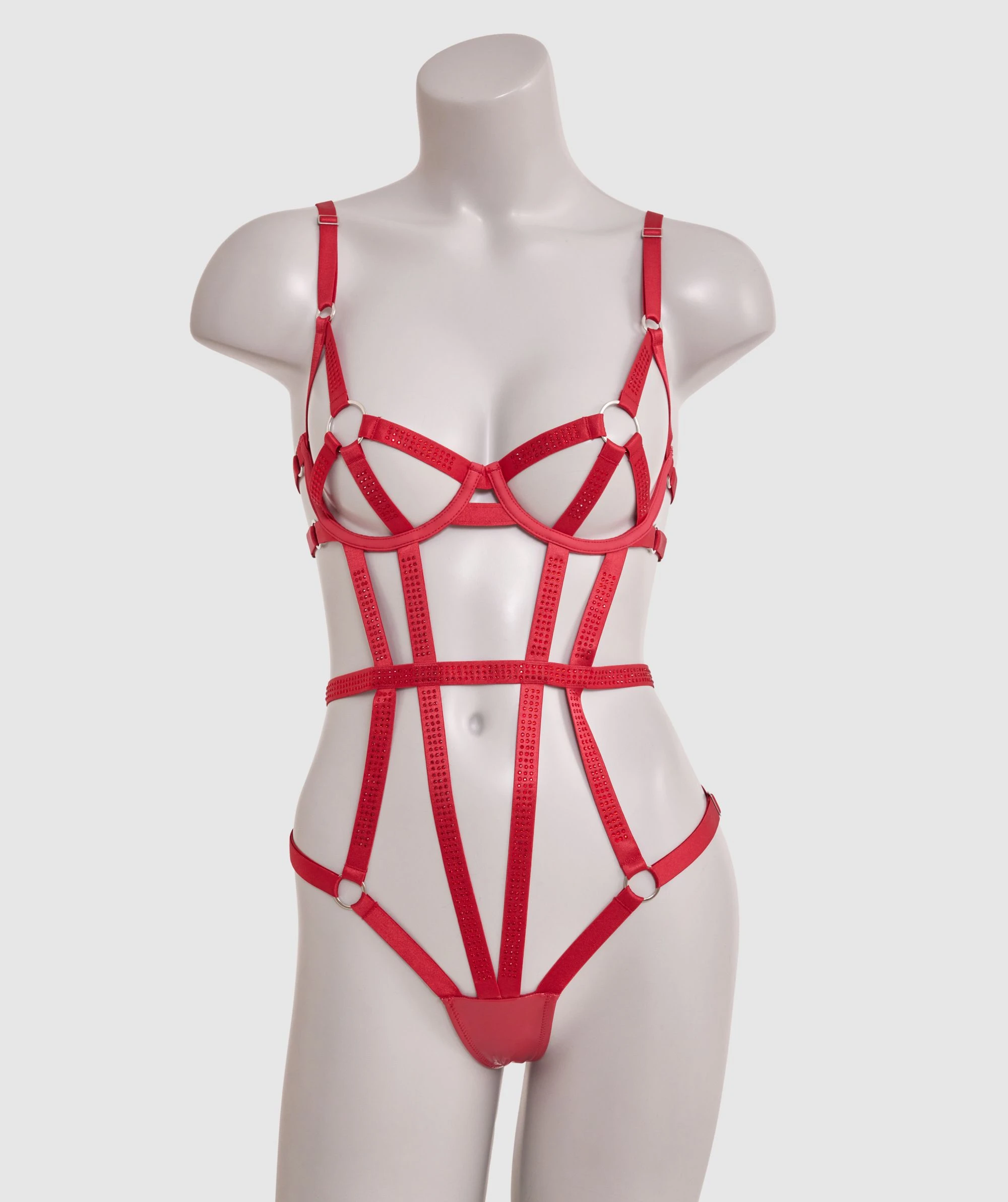 Explore your heart’s desires with our daring Sassy Cupless Bodysuit in vibrant red. Feel the rush of adrenaline as you decide how to play – will it be a gentle tease or a wild adventure? The perfect piece for those who love to take the reins.