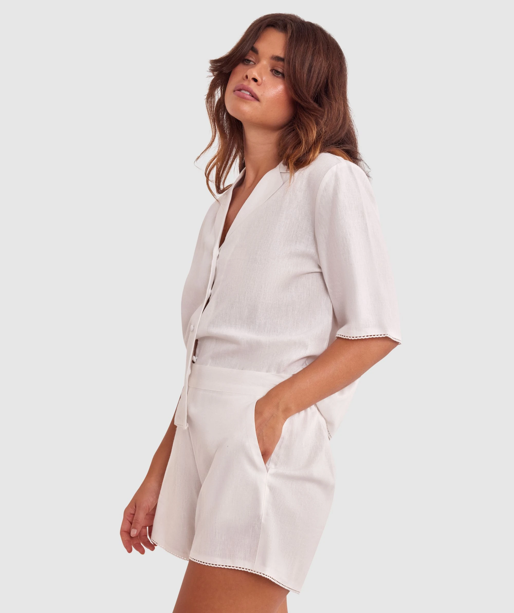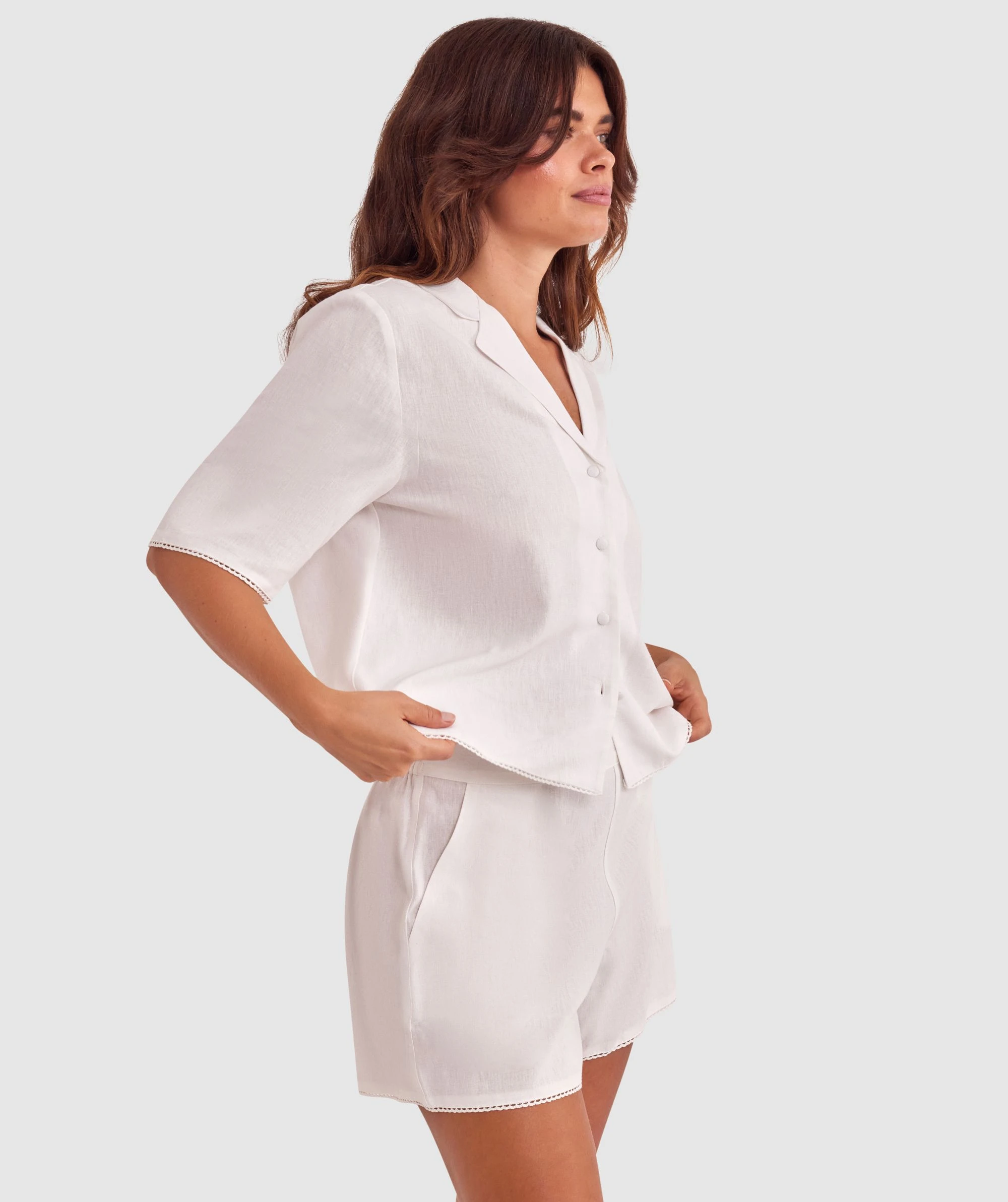 Grab the most versatile and comfy bottoms for your rest days. Our Penny Shorts in ivory ensure that you feel both stylish and snug for slumber and beyond. You can confidently embrace bedtime bliss with sophistication. Pair with our coordinating top.
