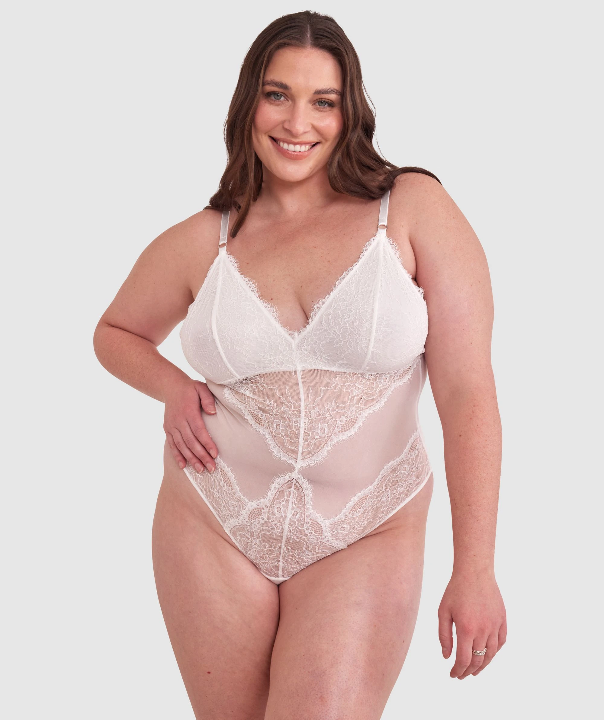 - – Wirefree lingerie bodysuit with sweetheart V neckline